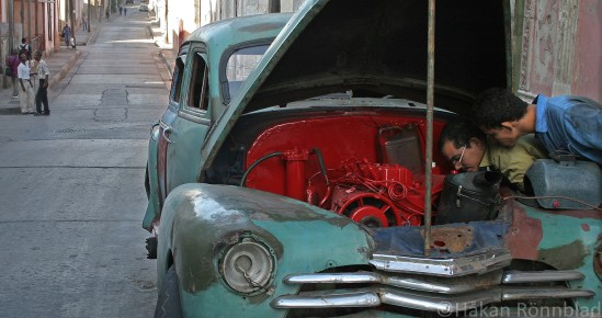 Cuba visitors smile and recognize the scene. The pre-revolutionary US type wrecks is kept running with the help of Cuban ingenuity and spare parts from all kind of cars Russian, Korean, Japanese… you name it.